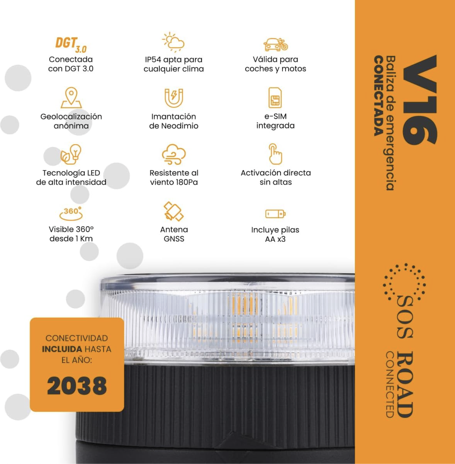 - Prepárate para el 2026 sin preocupaciones: A partir de enero, será obligatorio sustituir los triángulos por una baliza V16 conectada. Esta señal luminosa te protege y te mantiene dentro de la ley.